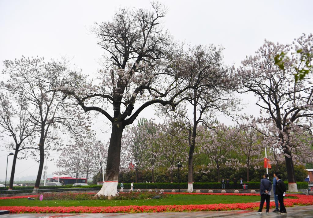 焦裕祿干部學(xué)院門口,一棵泡桐樹粗壯挺拔,華蓋如云。這棵已生長(zhǎng)了58年的老樹不負(fù)期待,桐花再次綻放。