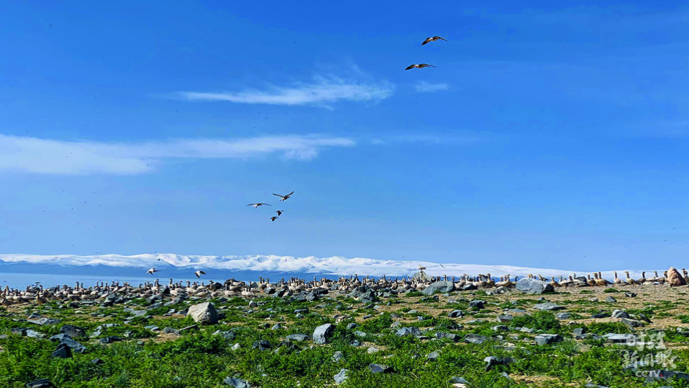 △數(shù)千只斑頭雁在青海湖邊筑巢。(圖/視覺中國(guó))