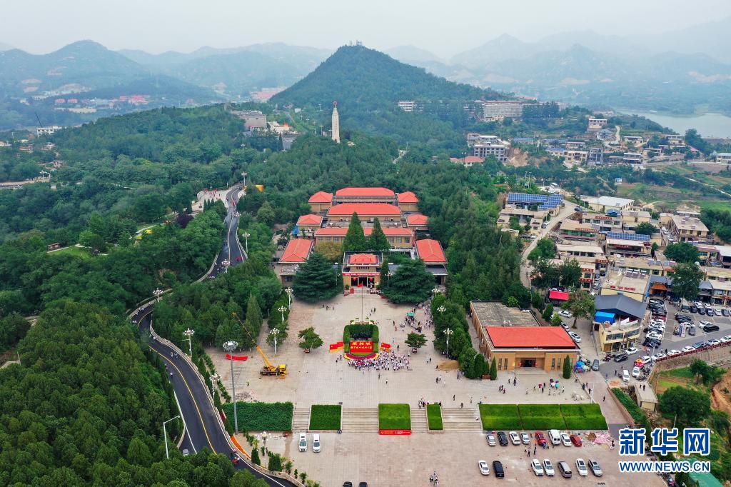 河北省平山縣西柏坡紀(jì)念館外景(6月13日攝,無人機(jī)照片)。新華社記者 牟宇 攝