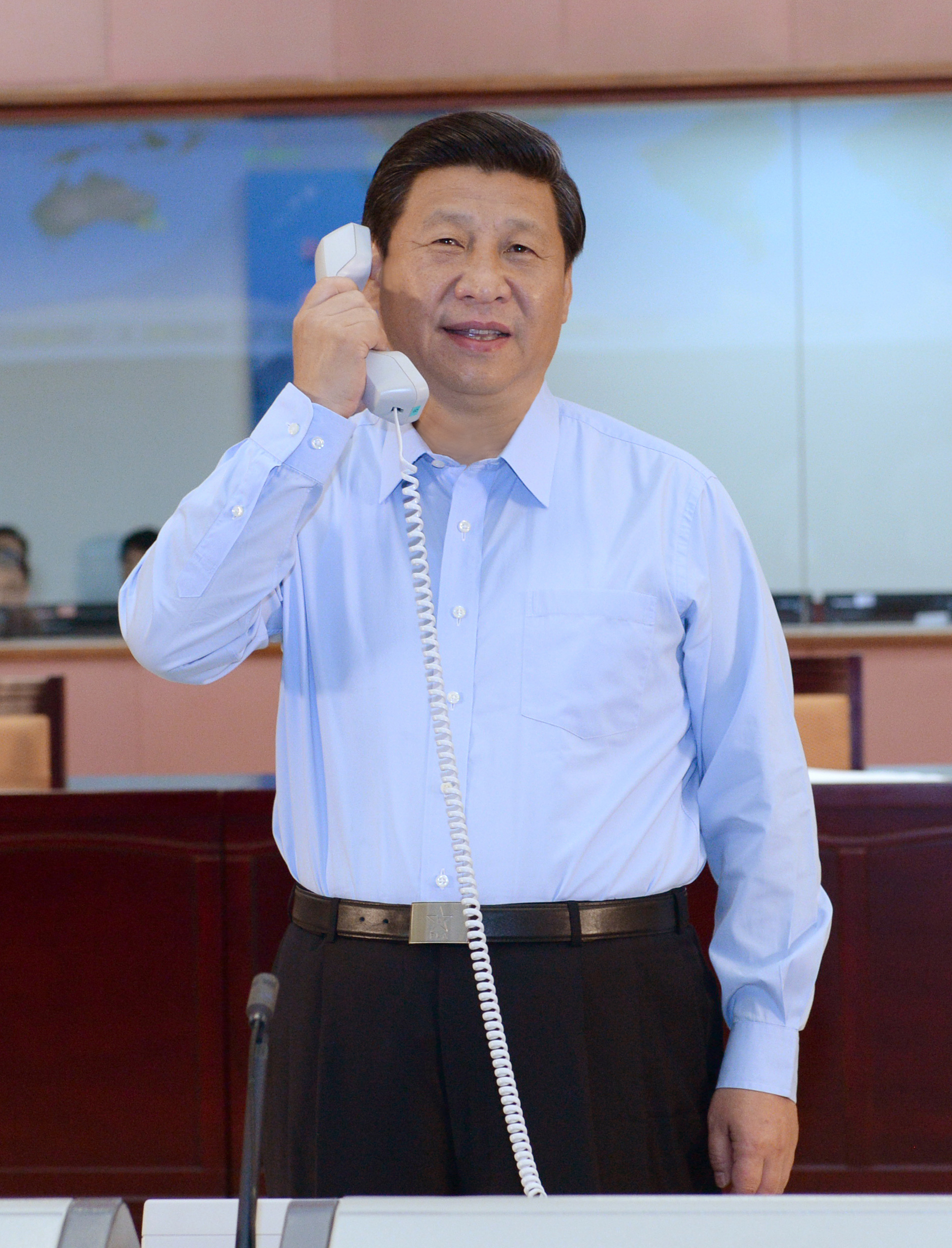 ↑2013年6月24日,習(xí)近平來到北京航天飛行控制中心,同正在天宮一號(hào)執(zhí)行任務(wù)的神舟十號(hào)航天員聶海勝、張曉光、王亞平親切通話。