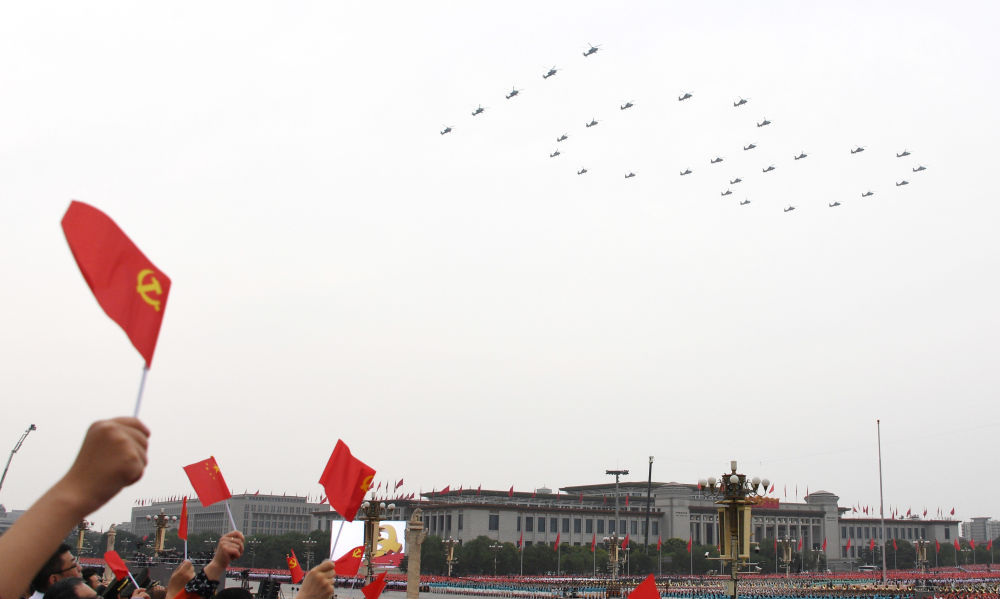7月1日上午,慶祝中國(guó)共產(chǎn)黨成立100周年大會(huì)在北京天安門廣場(chǎng)隆重舉行。這是飛行慶祝表演。新華社記者 李欣 攝