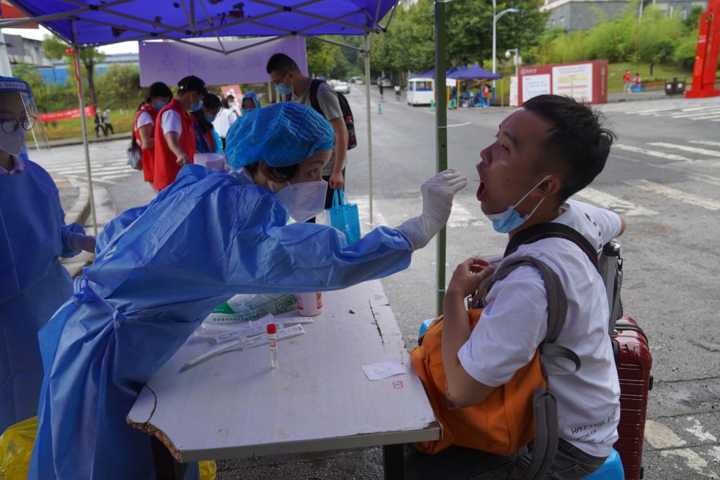 8月24日,貴州醫(yī)科大學新生報到注冊時接受核酸檢測。新華社發(fā)(李菡逸 攝)