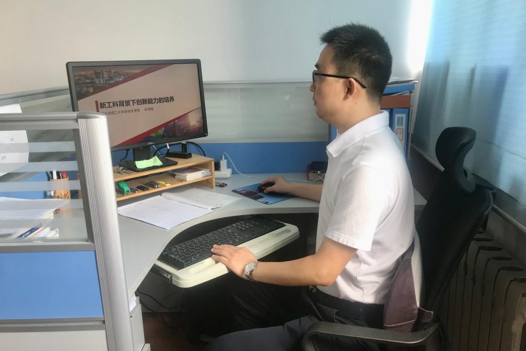 哈爾濱理工大學自動化學院教師孫明曉進行線上授課準備。受訪者 供圖