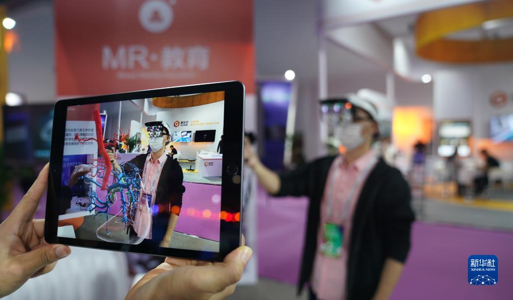 2020年10月19日,2020世界VR產(chǎn)業(yè)大會(huì)云峰會(huì)在江西省南昌市開(kāi)幕,這是觀眾在大會(huì)VR/AR產(chǎn)品和應(yīng)用展覽會(huì)上體驗(yàn)“MR交互系統(tǒng)”在醫(yī)務(wù)教學(xué)上的應(yīng)用。新華社記者 胡晨歡 攝