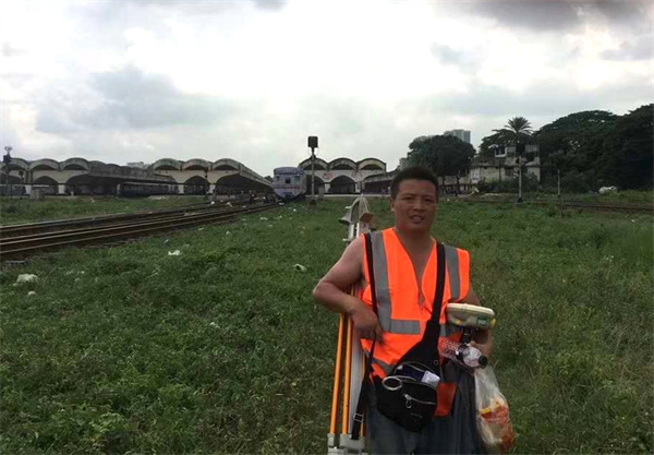 在中鐵一局三公司孟加拉帕德瑪大橋鐵路連接線項(xiàng)目,唐飛帶隊(duì)進(jìn)行前期控制網(wǎng)復(fù)測(cè),因前期各項(xiàng)準(zhǔn)備工作還未到位,來到這個(gè)陌生的國(guó)度,唐飛面臨的是一個(gè)語言不通、無后勤保障、自然條件惡劣的環(huán)境。沒有翻譯,唐飛就用翻譯軟件翻譯生僻的英語和設(shè)計(jì)、監(jiān)理溝通;沒有合適的工人,唐飛和隊(duì)員們就自己挖坑、抬樁子;沒有食堂,他們連續(xù)吃了一個(gè)月的方便面午餐。孟加拉位于熱帶地區(qū),雨水多且來勢(shì)迅猛,雨來時(shí),唐飛他們就在雨中堅(jiān)持放線,雨太大實(shí)在無法觀測(cè)時(shí),他們就站在雨中打著傘,用塑料袋保護(hù)著儀器,直到雨停后繼續(xù)觀測(cè)。