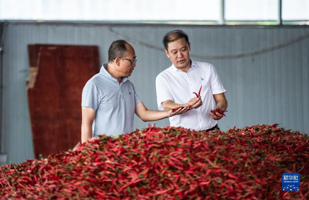 經(jīng)銷商在遵義市新蒲新區(qū)中國辣椒城挑選辣椒(2020年8月18日攝)。新華社記者 陶亮 攝