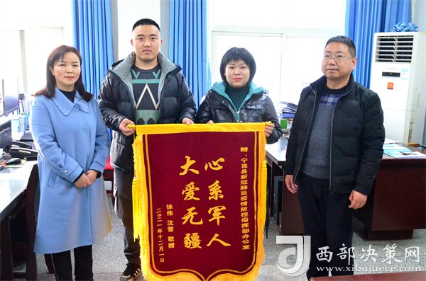西部決策網(wǎng)訊“我能夠與家人團(tuán)圓,能夠照顧我的妻子和母親,能夠見到剛出生不久的孩子,給你們添了不少麻煩,真的太感謝你們了!”12月1日下午,在四川綿陽(yáng)某部隊(duì)服役回家探親、家住寧強(qiáng)縣漢源街道辦二道河社區(qū)的徐偉與他的妻子及姐姐一同來(lái)到縣疫情防控辦,將一面印有“心系軍人 大愛無(wú)疆”的錦旗送到工作人員的手中時(shí)激動(dòng)地說,“你們?cè)诎倜χ心転槲覀冎?,你們是全心全意為人民服?wù)的好干部……我們制作了一面錦旗略表一下謝意,請(qǐng)收下!”