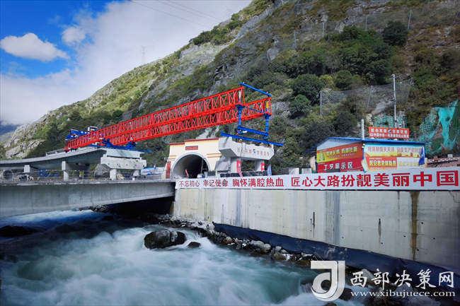 西部決策網(wǎng)訊11月29日,國道318線康定市過境段公路工程起點(diǎn)互通立交連接線最后一片T梁平緩地躺在康定河水面。至此,中鐵一局四公司國道318項(xiàng)目所有預(yù)制梁全部架設(shè)完畢。