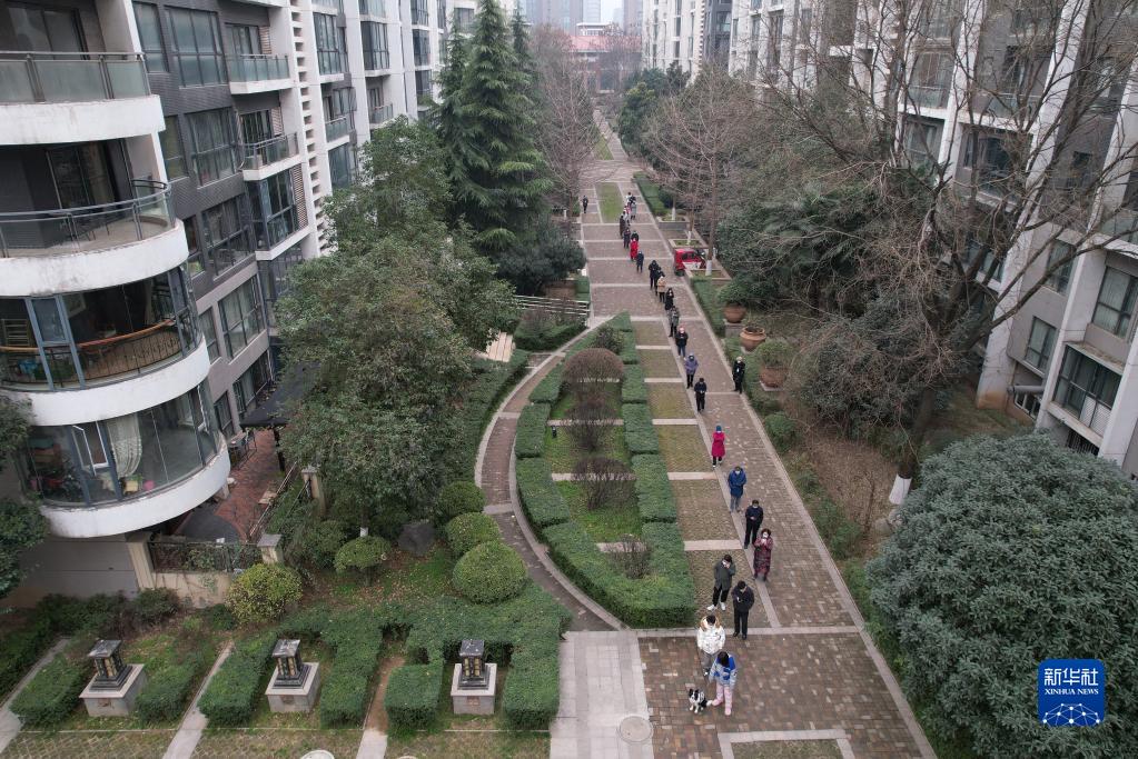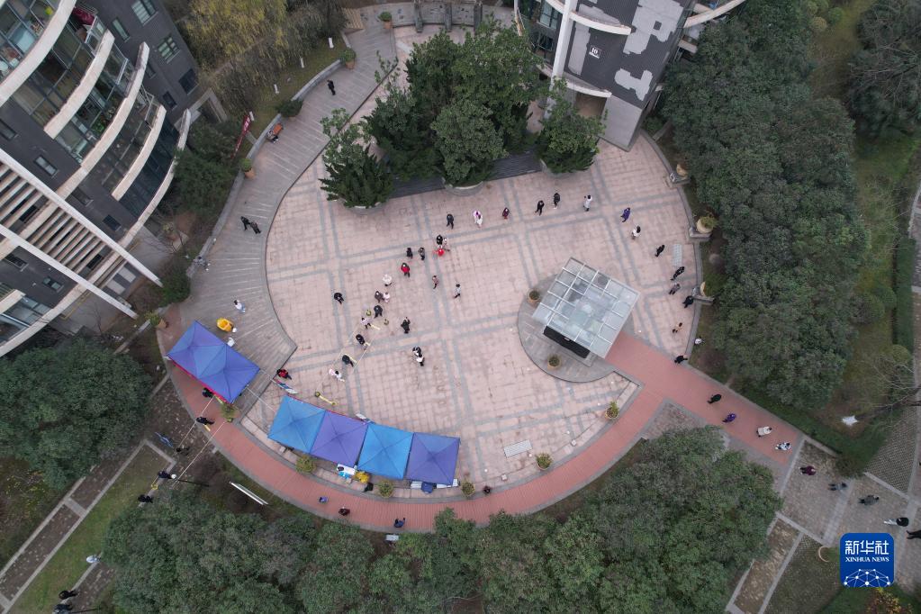 12月23日,在西安一小區(qū),居民排隊(duì)接受核酸檢測(cè)(無(wú)人機(jī)照片)。新華社記者 邵瑞 攝