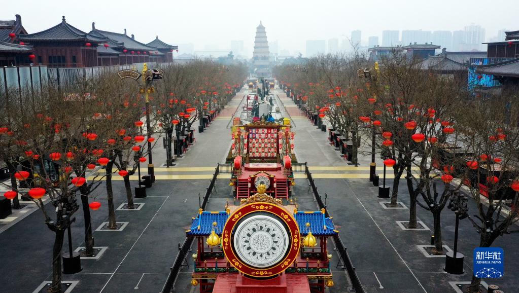 12月23日拍攝的西安大唐不夜城步行街(無(wú)人機(jī)照片)。新華社記者 邵瑞 攝