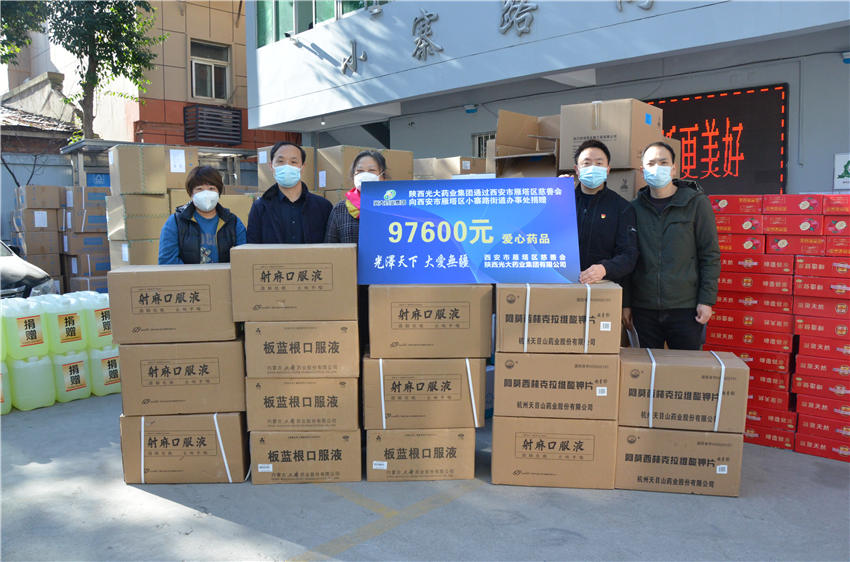 12月15日、20日,陜西光大藥業(yè)集團(tuán)股份有限公司向陜西省商貿(mào)學(xué)校、西安市雁塔區(qū)小寨路街道辦事處捐贈價值10余萬元的防護(hù)口罩、消毒液等防疫物資。