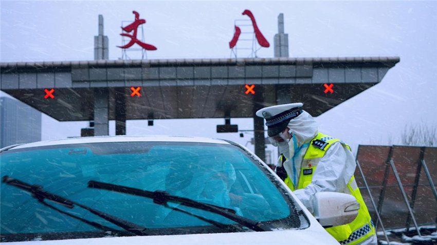臨退休民警朱永強雪天值守抗疫一線。