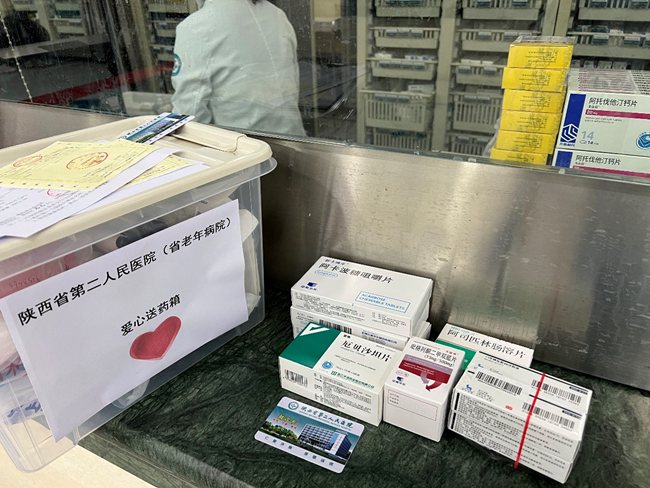 志愿者為患者送藥。陜西省第二人民醫(yī)院供圖