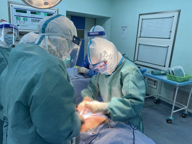 手術(shù)開始前,麻醉科醫(yī)生迅速為孕婦打好麻醉,盡快取出胎兒刻不容緩,經(jīng)過手術(shù),孕婦順利分娩出一名男嬰,母子平安。隨后,轉(zhuǎn)運(yùn)人員第一時(shí)間將嬰兒轉(zhuǎn)入新生兒科隔離暖箱,避免新生兒感染。