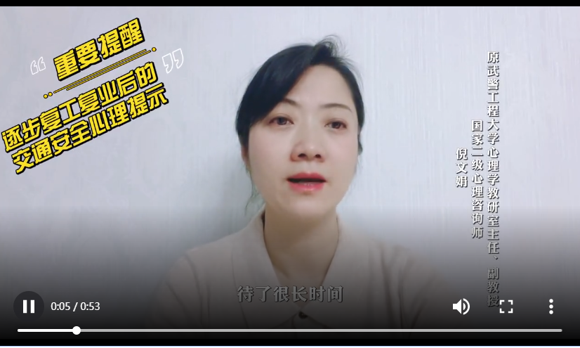 隨著西安復(fù)工復(fù)產(chǎn)的推進(jìn),“開車出門”成了恢復(fù)常態(tài)化防控之后,很多市民面臨的第一件事。今天(1月15日),西安交警邀請(qǐng)?jiān)渚こ檀髮W(xué)心理學(xué)教研室主任、副教授,國(guó)家二級(jí)心理咨詢師倪文娟,提醒駕駛員在家中狹小的空間內(nèi)長(zhǎng)時(shí)間封閉后,如何保持安全出行心態(tài)。