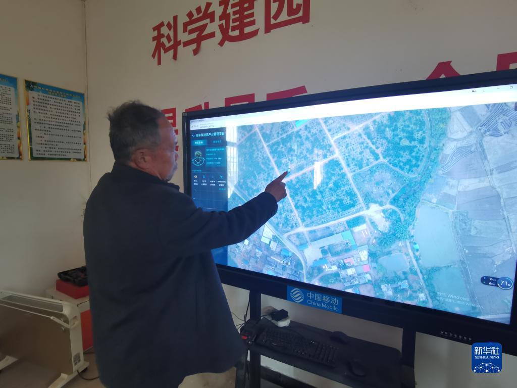 康登明正在通過(guò)屏幕了解果園實(shí)時(shí)情況。新華社記者 熊家林 攝