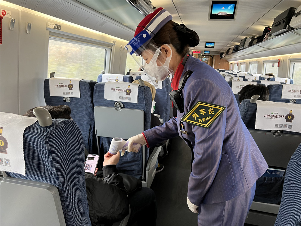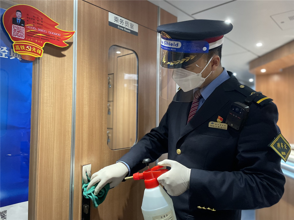 面對今年春運疫情防控形勢和大客流安全運輸壓力,全體高鐵乘務(wù)人員將嚴(yán)把安全關(guān),加強設(shè)施設(shè)備檢修維護。主動做好疫情防控,加強車廂內(nèi)消毒和衛(wèi)生清掃、為旅客提供安全衛(wèi)生的餐飲產(chǎn)品,加密列車公共部位消毒頻次、科學(xué)做好發(fā)熱旅客處置、加強旅客防護用品佩戴提醒等,用心為旅客服務(wù),讓旅客平安健康出行。