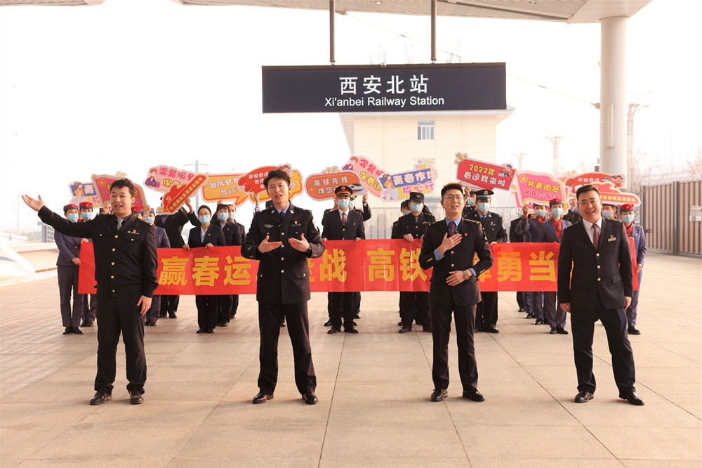 1月17日,來自中國鐵路西安局集團有限公司黨團員代表,在西安北站演唱西鐵版《西安人的歌》。