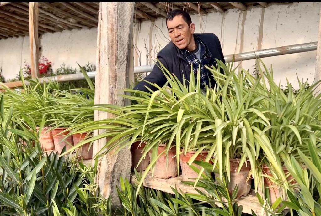 寒冬臘月,室外氣溫達(dá)零下10多攝氏度,奧圖拉庫勒達(dá)西村農(nóng)民艾力·艾合買提家前院450平方米的大棚里,卻是春意盎然,20多種花卉苗生機勃勃。“現(xiàn)在南疆農(nóng)村老百姓很喜歡買花擺在家里,像這種艾德萊斯花、每日春、蘆葦花,賣得特別好。”他告訴記者,今年打算繼續(xù)擴大花卉品種。