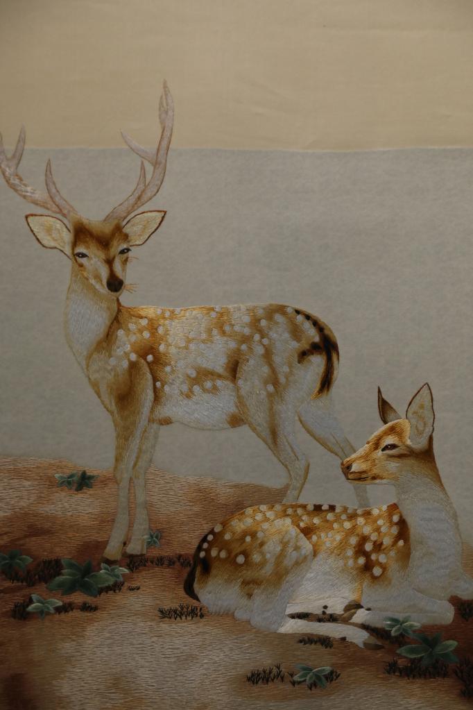 “你看這兩幅都是貴南藏繡,一幅生硬、粗獷,另一幅靈動(dòng)、細(xì)膩,就是要通過(guò)學(xué)習(xí)其他繡法,不斷摸索創(chuàng)新,讓藏繡越來(lái)越精美。”拉毛葉忠拿著這兩幅藏羚羊作品解釋。作為省級(jí)非物質(zhì)文化遺產(chǎn)項(xiàng)目代表性傳承人,拉毛葉忠一直在思考,如何讓傳統(tǒng)藏繡煥發(fā)新活力。