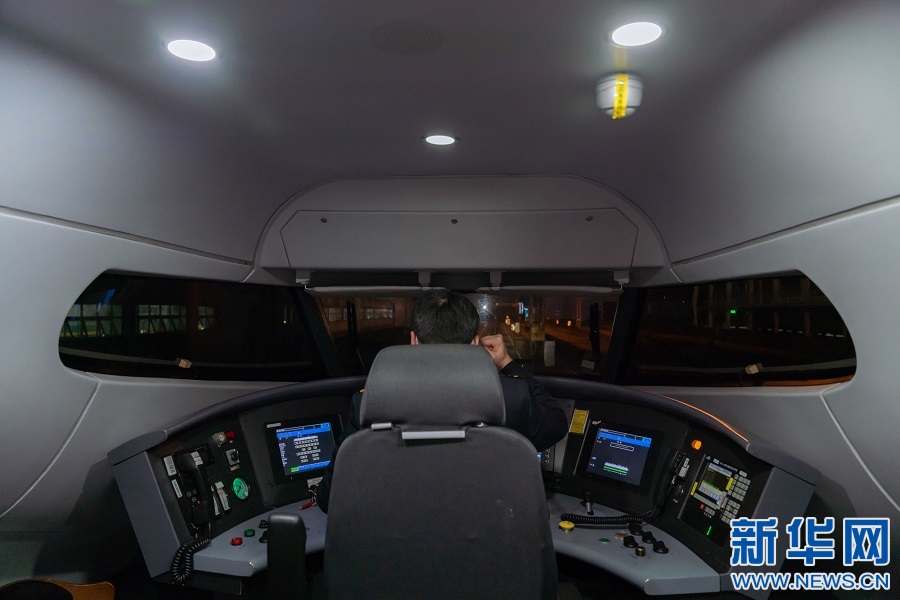 蘇盛正在駕駛列車(chē)。新華網(wǎng)發(fā) 趙磊 攝