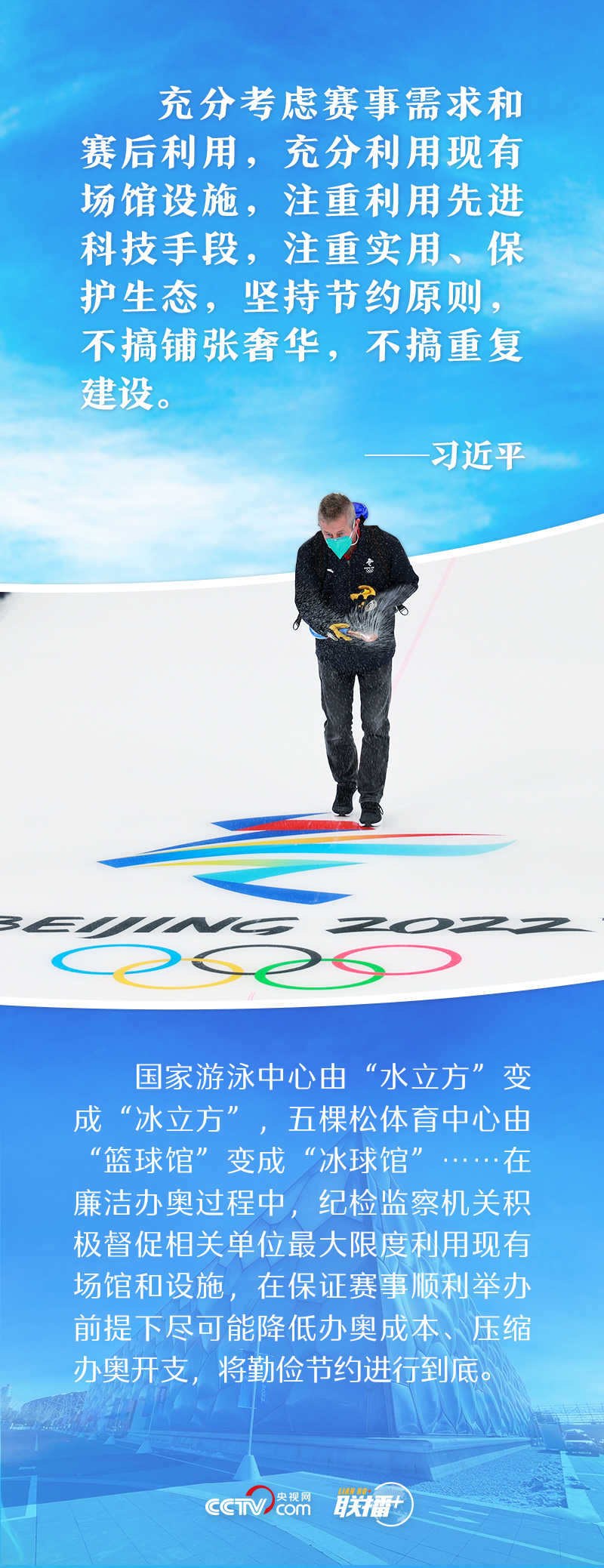 “能借不租,能租不買”極大地節(jié)省了物資采購成本;整合需求、減少流轉(zhuǎn)環(huán)節(jié),最大限度壓縮權(quán)力尋租空間,提高廉潔透明度;堅持對興奮劑問題零容忍......廉潔辦奧理念貫穿于北京冬奧會籌備、運(yùn)行的各個方面。那么,這些具體措施都是如何落實(shí)的呢?央視網(wǎng)《聯(lián)播+》帶您一起了解。