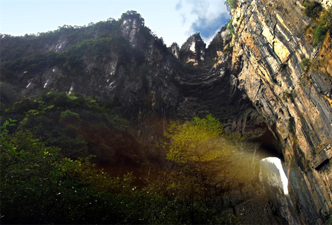 藍(lán)天白云下的天坑