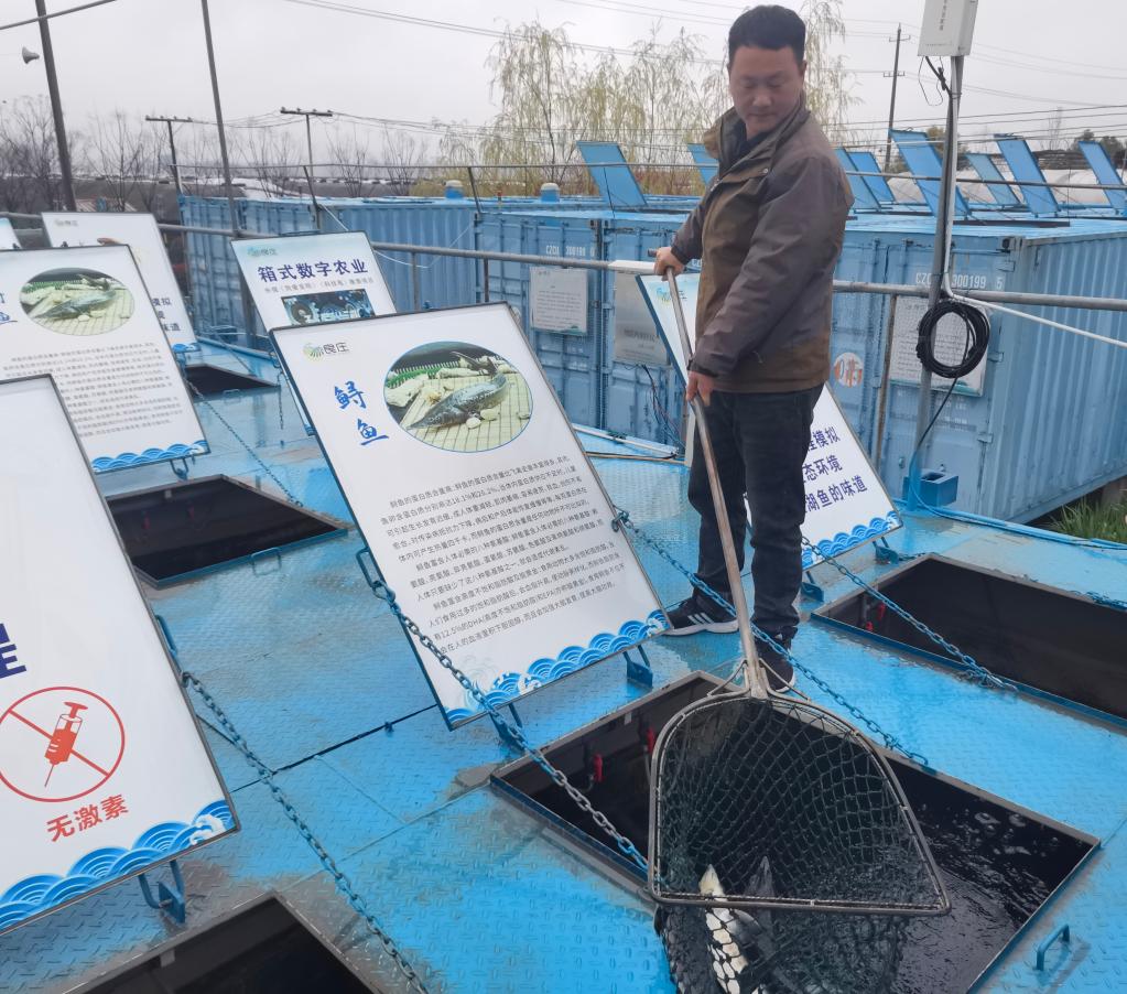 “我們模擬活水循環(huán),采用尾水處理、養(yǎng)殖廢水利用等方式,打造適合魚類生長的環(huán)境,實(shí)現(xiàn)全程可控化、標(biāo)準(zhǔn)化生產(chǎn)。”良莊農(nóng)業(yè)科技園負(fù)責(zé)人陳金良告訴記者,與普通魚塘相比,集裝箱養(yǎng)殖同等數(shù)量的魚,可以節(jié)約土地資源和水資源均在90%以上,“這個(gè)智慧漁場有70個(gè)集裝箱,一年能產(chǎn)魚約40萬斤。”