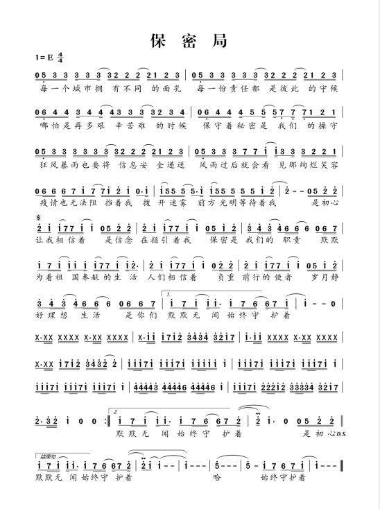慶祝建黨百年獲獎歌曲作品選集——《保密局》詞曲。
