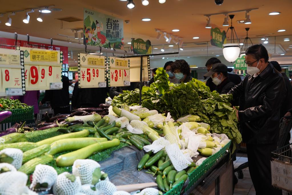 4月15日,市民在青海省西寧市城北區(qū)的一家超市里選購(gòu)蔬菜。新華社記者 耿輝凰 攝