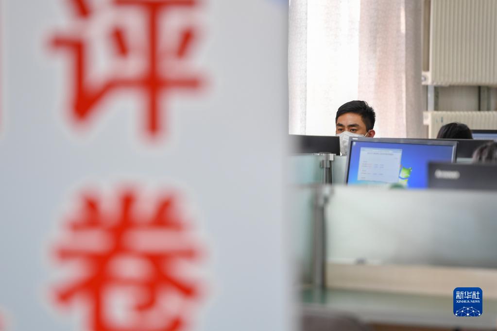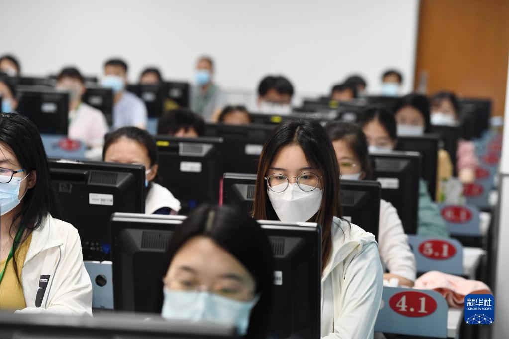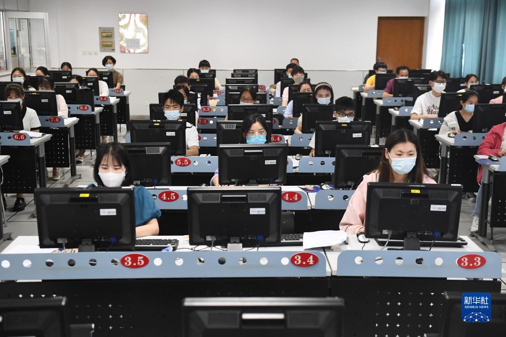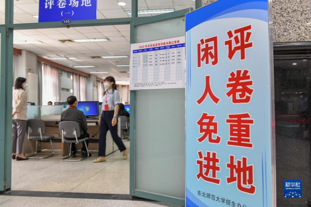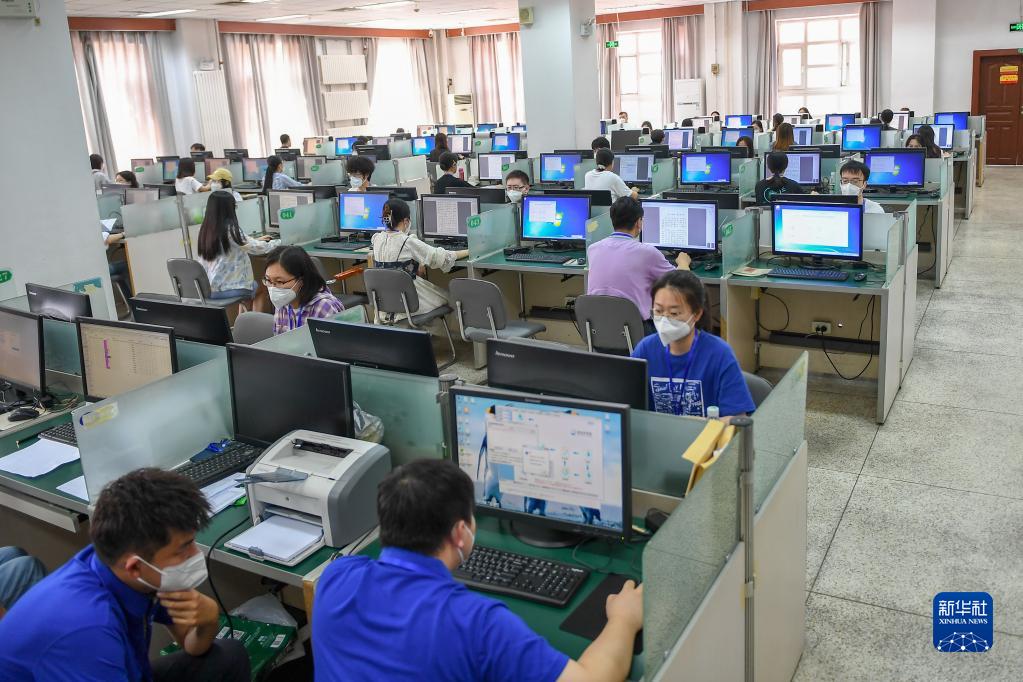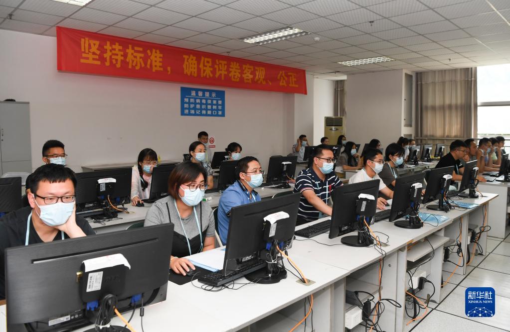 6月14日,在位于吉林長春的東北師范大學(xué)高考網(wǎng)上評卷點(diǎn),工作人員在評卷。據(jù)了解,2022年吉林省高考評卷工作全部采用電子掃描、網(wǎng)上評卷方式進(jìn)行。新華社記者 張楠 攝