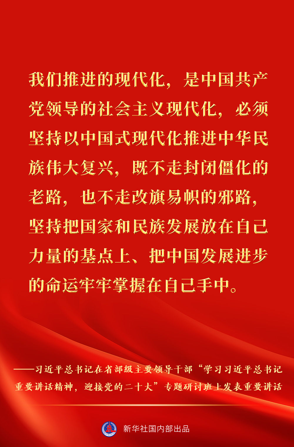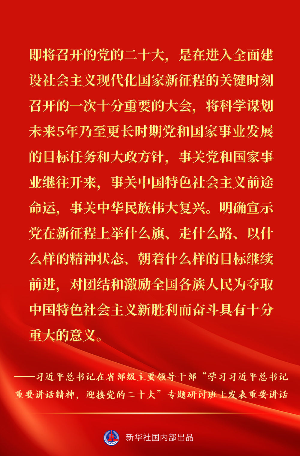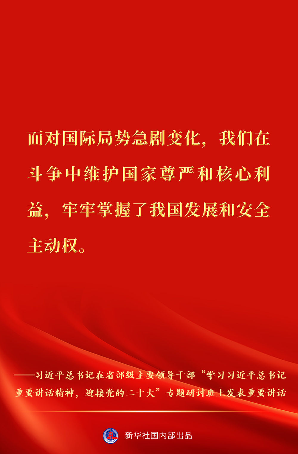 省部級(jí)主要領(lǐng)導(dǎo)干部“學(xué)習(xí)習(xí)近平總書記重要講話精神,迎接黨的二十大”專題研討班26日至27日在京舉行。中共中央總書記、國(guó)家主席、中央軍委主席習(xí)近平發(fā)表重要講話。一起來(lái)看金句速覽。