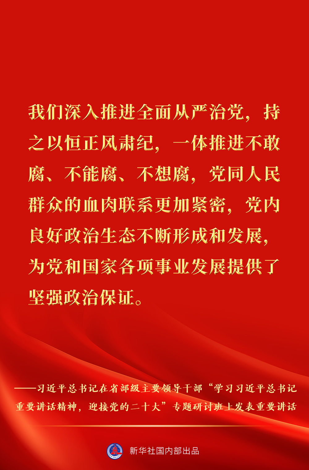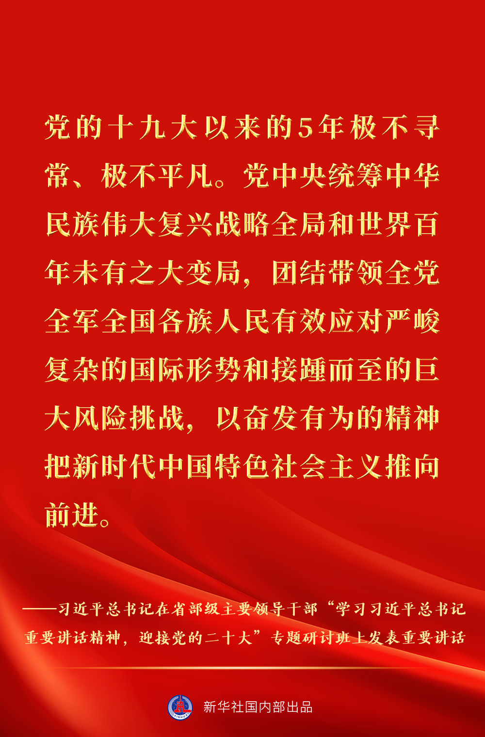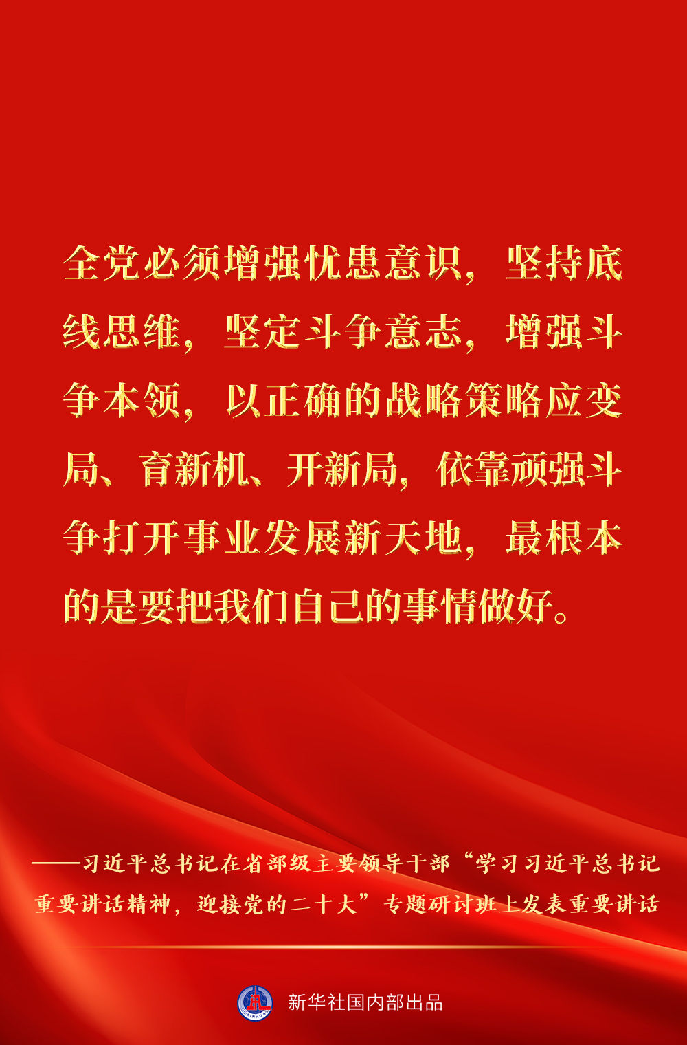 省部級(jí)主要領(lǐng)導(dǎo)干部“學(xué)習(xí)習(xí)近平總書記重要講話精神,迎接黨的二十大”專題研討班26日至27日在京舉行。中共中央總書記、國(guó)家主席、中央軍委主席習(xí)近平發(fā)表重要講話。一起來(lái)看金句速覽。