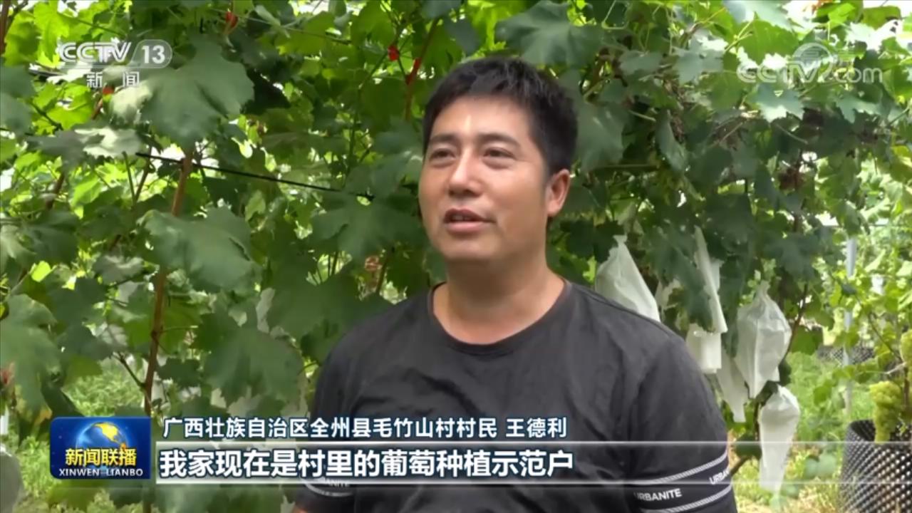 廣西壯族自治區(qū)全州縣毛竹山村村民 王德利:去年總書(shū)記來(lái)我們家,囑托我們注重學(xué)習(xí)科學(xué)技術(shù),用知識(shí)托起鄉(xiāng)村振興。我家現(xiàn)在是村里的葡萄種植示范戶(hù),去年光葡萄一項(xiàng),我家就收入10多萬(wàn)元。