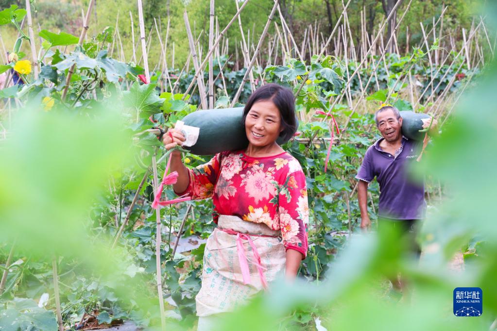 9月1日,村民在貴州省畢節(jié)市百里杜鵑管理區(qū)鵬程街道大水社區(qū)田間勞作。新華社發(fā)(李華 攝)