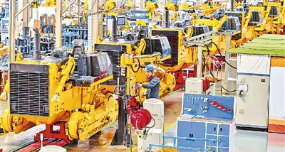 近年來,山東山推工程機(jī)械股份有限公司積極響應(yīng)“一帶一路”倡議,主要產(chǎn)品在“一帶一路”沿線均有銷售。圖為在山推總裝車間,工人正在作業(yè)。 |