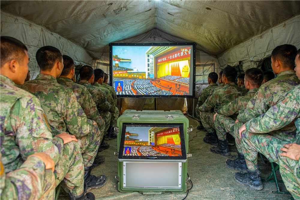 南部戰(zhàn)區(qū)海軍某守備部隊官兵集合在會議室,認(rèn)真收看黨的二十大開幕并交流體會。在祖國西陲阿爾泰山腹地,新疆軍區(qū)紅山嘴邊防連官兵收看黨的二十大開幕后,立即展開討論。官兵們說:“身后是祖國和人民,我們一定要忠誠履行衛(wèi)國戍邊職責(zé),深入推進(jìn)實戰(zhàn)化軍事訓(xùn)練,以過硬軍事能力筑牢邊疆安全穩(wěn)定屏障,努力為黨和人民再立新功。”