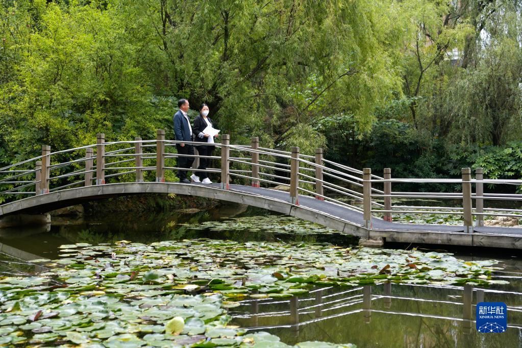 10月16日,在貴州貴陽(yáng)觀(guān)山湖區(qū)金陽(yáng)街道,金元社區(qū)黨總支副書(shū)記安春燕(右)與居民交流。新華社記者 楊文斌 攝
