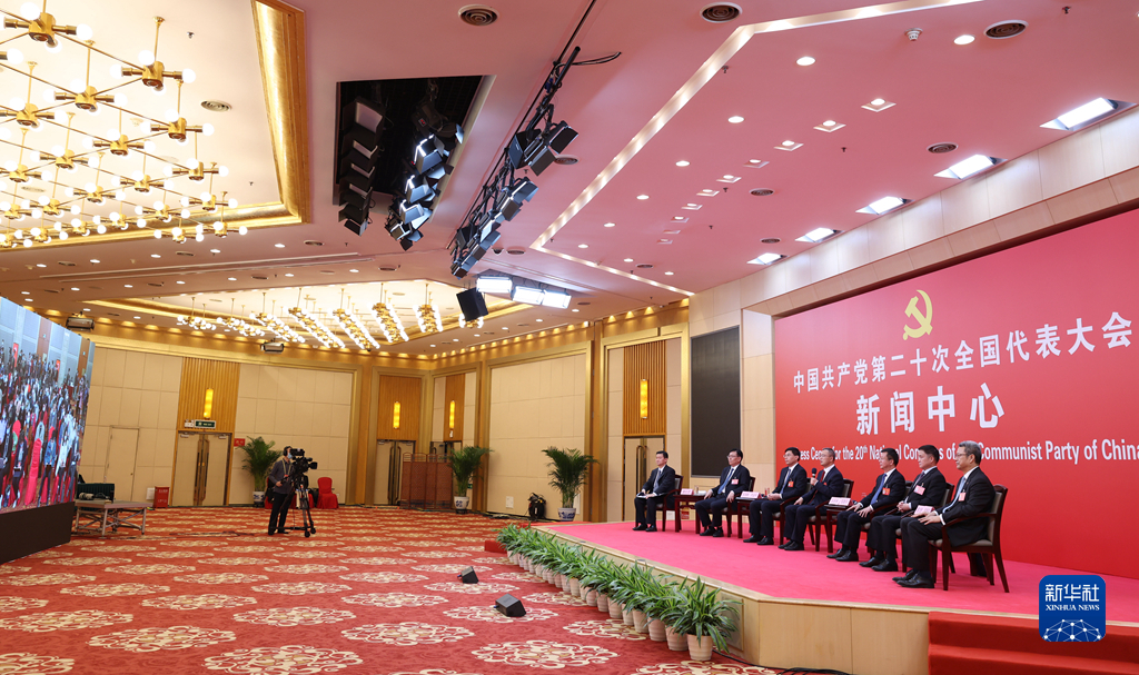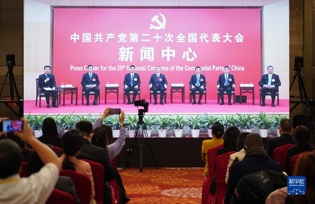 10月20日,中國共產(chǎn)黨第二十次全國代表大會新聞中心舉行集體采訪。青海、寧夏、新疆、中央和國家機(jī)關(guān)、中央金融系統(tǒng)、中央企業(yè)系統(tǒng)(在京)代表團(tuán)新聞發(fā)言人出席,介紹代表團(tuán)學(xué)習(xí)討論二十大報(bào)告情況,并回答記者提問。新華社記者 張玉薇 攝