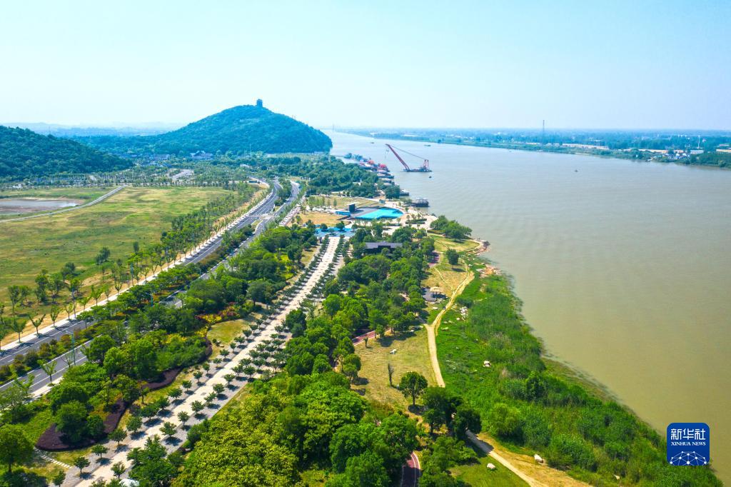 安徽省馬鞍山市長江岸線景觀帶(2022年5月17日攝,無人機(jī)照片)。新華社發(fā)