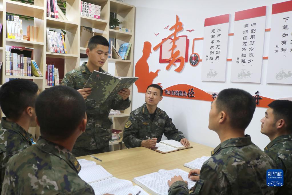 中共中央總書(shū)記、國(guó)家主席、中央軍委主席習(xí)近平24日下午出席軍隊(duì)領(lǐng)導(dǎo)干部會(huì)議時(shí)發(fā)表的重要講話,在解放軍和武警部隊(duì)引起強(qiáng)烈反響。這是南部戰(zhàn)區(qū)陸軍第74集團(tuán)軍某合成旅“大渡河連”組織官兵認(rèn)真學(xué)習(xí)習(xí)主席重要講話(10月25日攝)。新華社發(fā)(薛健 攝)