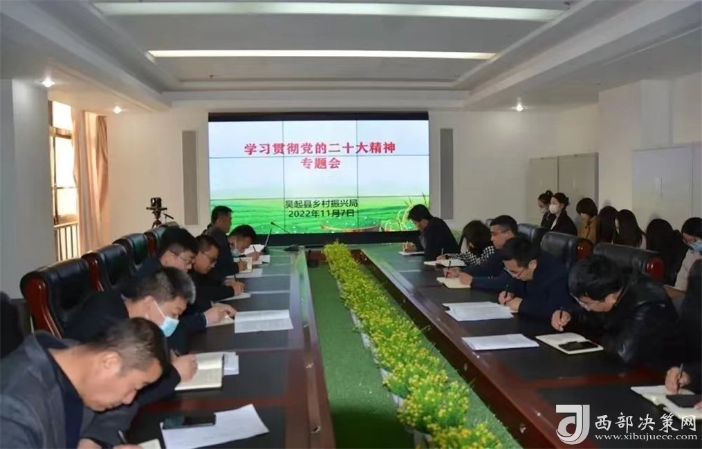 ( 西部決策網(wǎng)訊 齊春梅)11月7日,吳起縣鄉(xiāng)村振興局召開會議專題傳達學習黨的二十大精神,安排部署學習貫徹意見,局長王鑫主持,局全體領導干部參加會議。