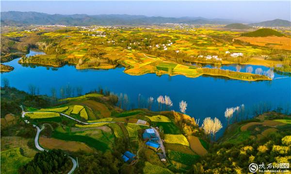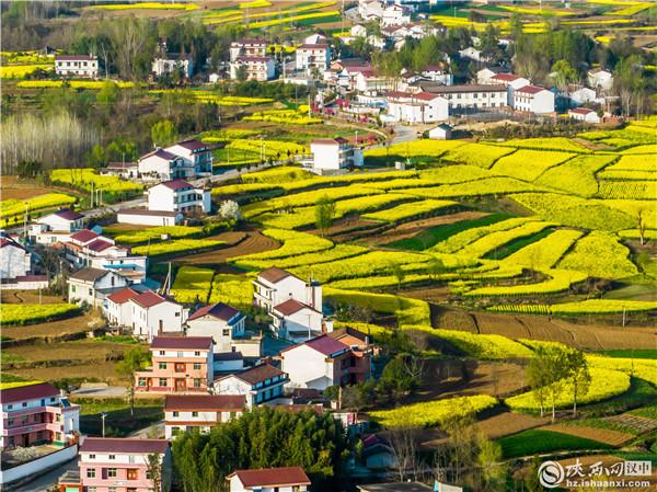 隨著3月春風(fēng)來(lái),陜西漢中市上百萬(wàn)畝油菜花盛開(kāi)。從空中俯瞰油菜花海,春日的氣息撲面而來(lái),一幅春意盎然的鄉(xiāng)村美景圖徐徐展開(kāi)。(攝影:大尾狐)