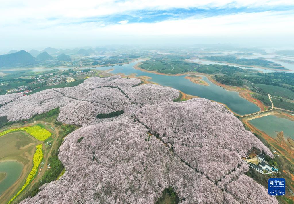 這是3月21日拍攝的貴州省貴安新區(qū)櫻花園(無(wú)人機(jī)全景照片)。新華社記者 楊文斌 攝