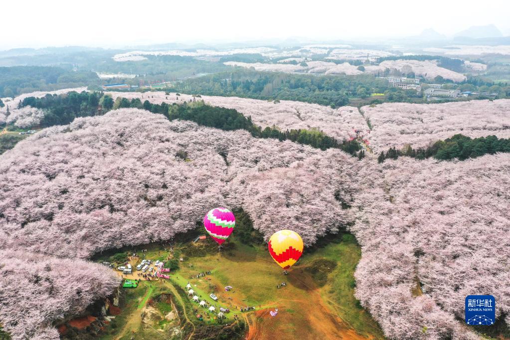3月21日拍攝的貴州省貴安新區(qū)櫻花園(無(wú)人機(jī)照片)。新華社記者 陶亮 攝