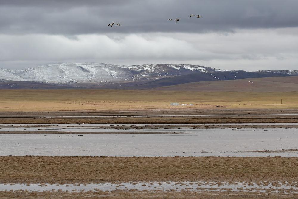 這是6月14日在長江源地區(qū)沱沱河附近拍攝的景色。