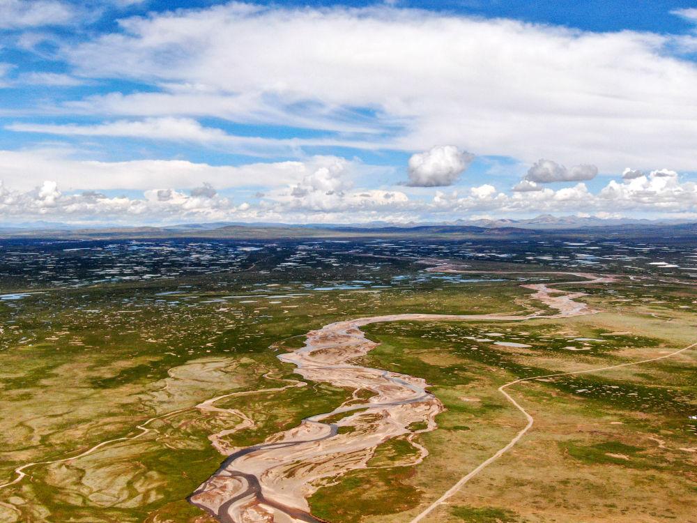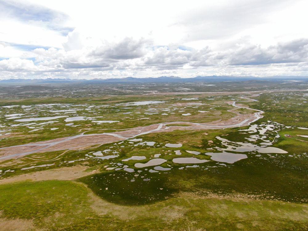 這是2022年7月27日在長江源地區(qū)拍攝的囊極巴隴河道,長江正源沱沱河和南源當曲在此匯合。