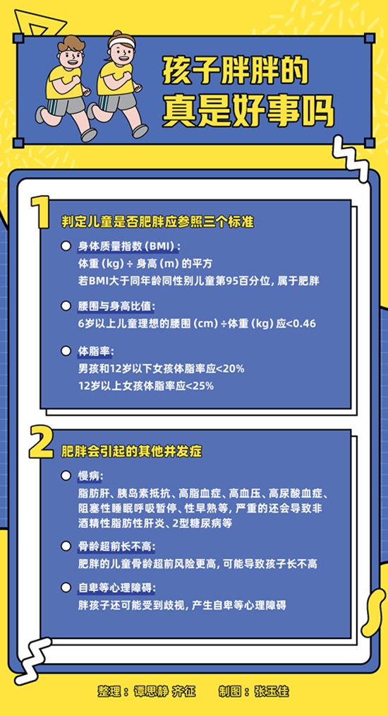 8歲的輝輝身高1.29米,但體重已經(jīng)達到了40公斤,屬于肥胖的范疇。由于身體質量指數(shù)(BMI)不達標,影響了體育成績,學校要求“叫家長”。輝輝從小由奶奶照顧,奶奶帶輝輝來到醫(yī)院不解地問:“輝輝胖胖的體型加上開朗樂觀的性格,到哪都是人見人愛。小時候胖,長大自然就瘦了。孩子這么小就開始減肥,會不會影響健康?”
