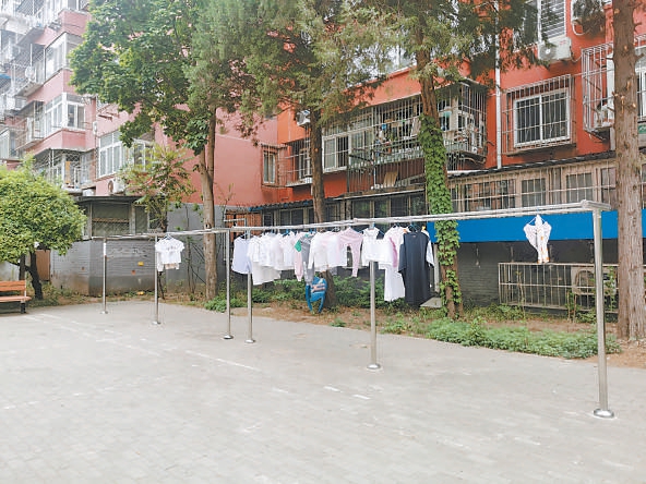 走出古城南路社區(qū)東門,沿古城東街北行400余米右轉(zhuǎn)進(jìn)入八角北路社區(qū),只見幾株高大的國槐及道邊的綠藤錯落有致。再向里走,是一塊寬闊的活動場地,北側(cè)建有一排不銹鋼晾衣架,架上晾滿了衣服。“有居民提出家里陽臺上晾衣服不方便,我們特地尋找合適地方,為這些社區(qū)建了晾衣架。”北京石房物業(yè)有限公司(以下簡稱石房物業(yè))副經(jīng)理孫偉說。