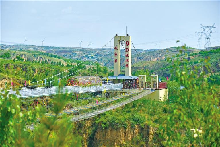 榆陽區(qū)古塔鎮(zhèn)趙家峁村的吊橋如今已成為“網(wǎng)紅打卡地”。 陜西農(nóng)村報(bào)記者 孫金龍攝